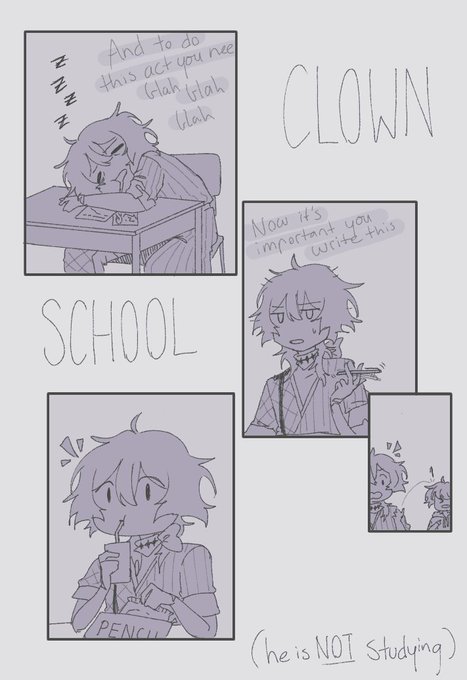day 4 clown school (the last one being based on the time i brought a bag of hot cross buns into class with my pencil case) #Bettelful #Augoost2023