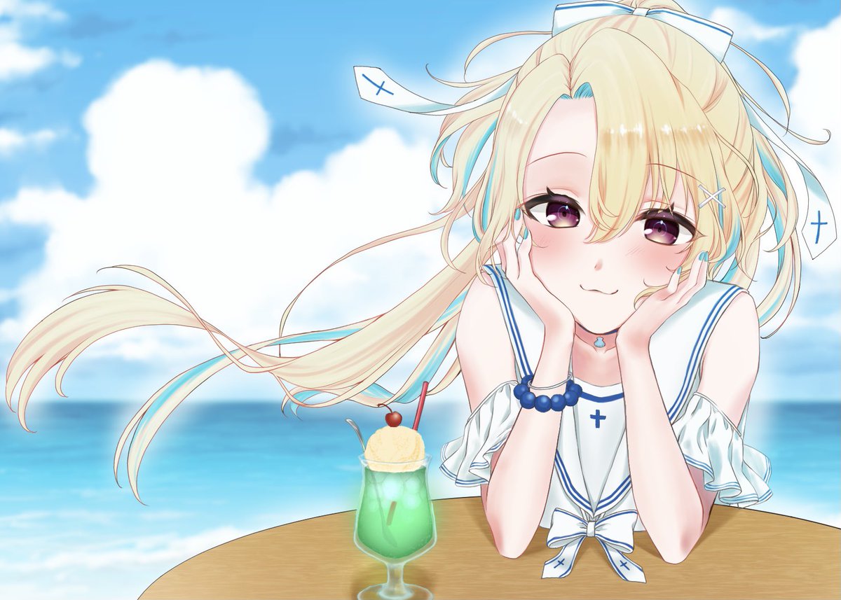 くろしむさん(@cro_simu )からのご依頼で水瀬しあちゃんのフラスタ用イラストを描かせていただきました🥰 わくVの女王しあちゃん! ご出演おめでとうございます🏖💕💕 #しあーと