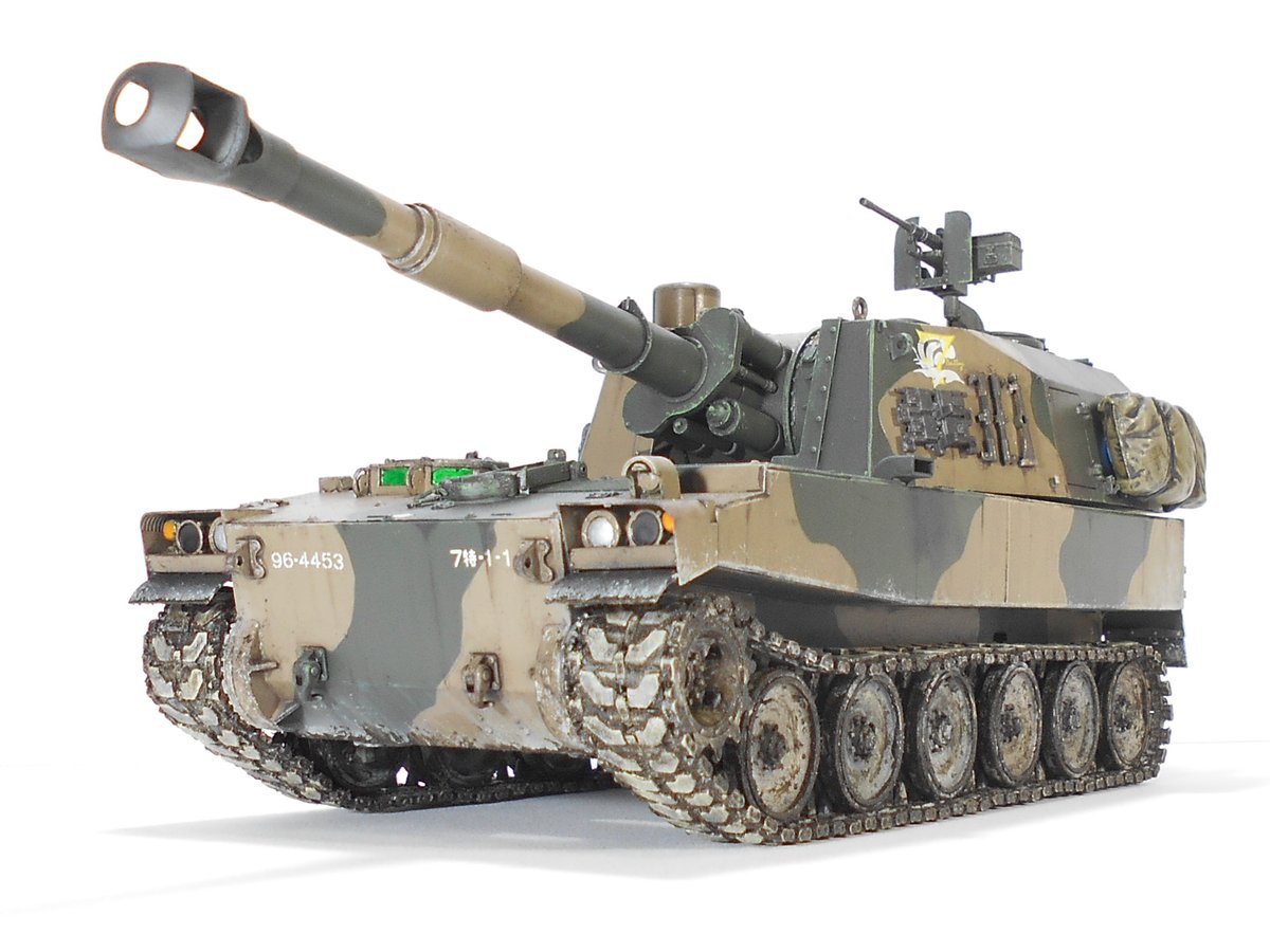 #Twitter模型総火演2022 1/35 ファインモールド 60式自走106mm無反動砲 C型 完成しました!部品が細かく精密でファインのキットの中では難易度高め、ですがその分作りごたえがありました。 消火器の塗装指示は銀ですがアクセント目当てで赤で塗りました。