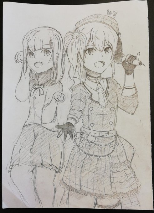 #ほしまちぎゃらりー すいちゃんを描きました! 最近どんどん画力が上がってきてて楽しい(´ω`) ちなみに左の子は落書きした時のオリジナルの子でございます