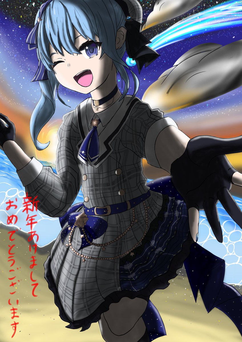 #あけましておめでとう! #ほしまちぎゃらりー あけましておめでとうございます! 今日のために描いてきたすいちゃんをドーン! 今年もどうぞよろしくお願いします!