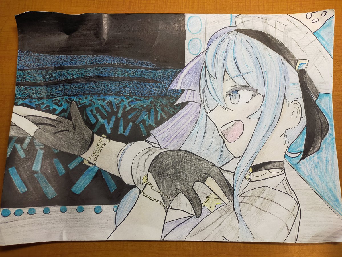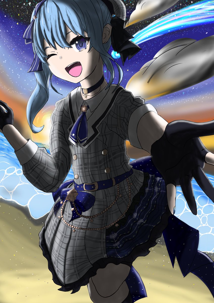 #ほしまちぎゃらりー すいちゃんの色付けできました! ここで一句 この後の 背景全く 考えてない ガンバリマス!