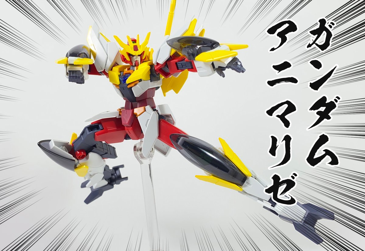 というわけでコアガンダムリゼとリゼマシン(とその他アーマー類)がドッキングしガンダムアニマリゼに。 赤に白と黄色が増えて非常にヒロイックな見た目に。 スパロボいぞ!! #ガンプラ #g_bd #ビルドダイバーリゼ