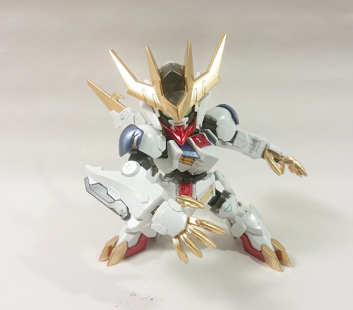 ようやく写真撮ったよリゼくん! というわけでまずはコアガンダムリゼ。 基本的にはヒロトのコアガンダムと同じで、顔・ツノ・バックパックが変更されています。 (腰アーマーの向きが…!!) #ガンプラ #g_bd #ビルドダイバーリゼ