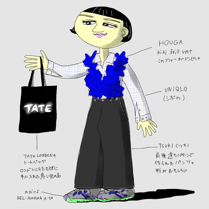 先週、福岡へ旅行に行きまして その時の服装(上半身)を描きました - #illustration #art #paint #fashion #fashionillustration #イラスト #ファッションイラスト #ootd #selfportrait
