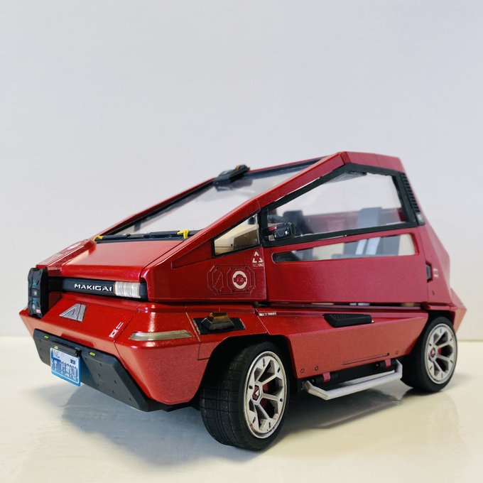 #cyberpunk2077 に登場する可愛い車 MAKIGAI MAIMAI P126 を、今度は1/24スケールで作りました。 以前作った1/12スケールからドアの開閉やその他パーツ分割を簡略化して作ってます。