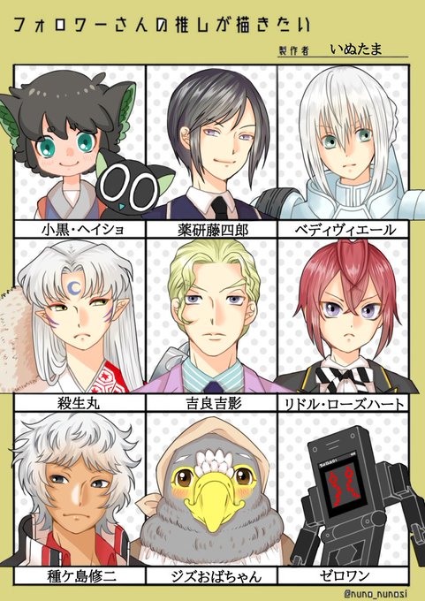 #フォロワーさんの推しを描きたい このタグで総勢9枠描かせて頂きましたー!お一人オリキャラ、その他版権です。 ご協力頂いた方々ありがとうございましたー! なんか恥ずかしいのでリク元の方にメンション付けないので届くことを願います…!