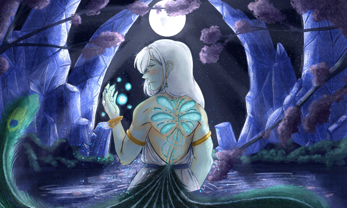 "Underneath the rising sun, sat the priestess with her back turned to it. Legs folded underneath her, she reached up as if to catch the golden rays like they were liquid gold"(1/5) #inART