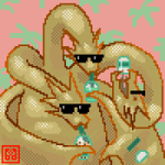 King Ghidorah enjoying a nice frappuccino. ☕🌴 #KingGhidorah #GodzillaKingOfTheMonsters #Godzilla2 #digitalart #pixelart