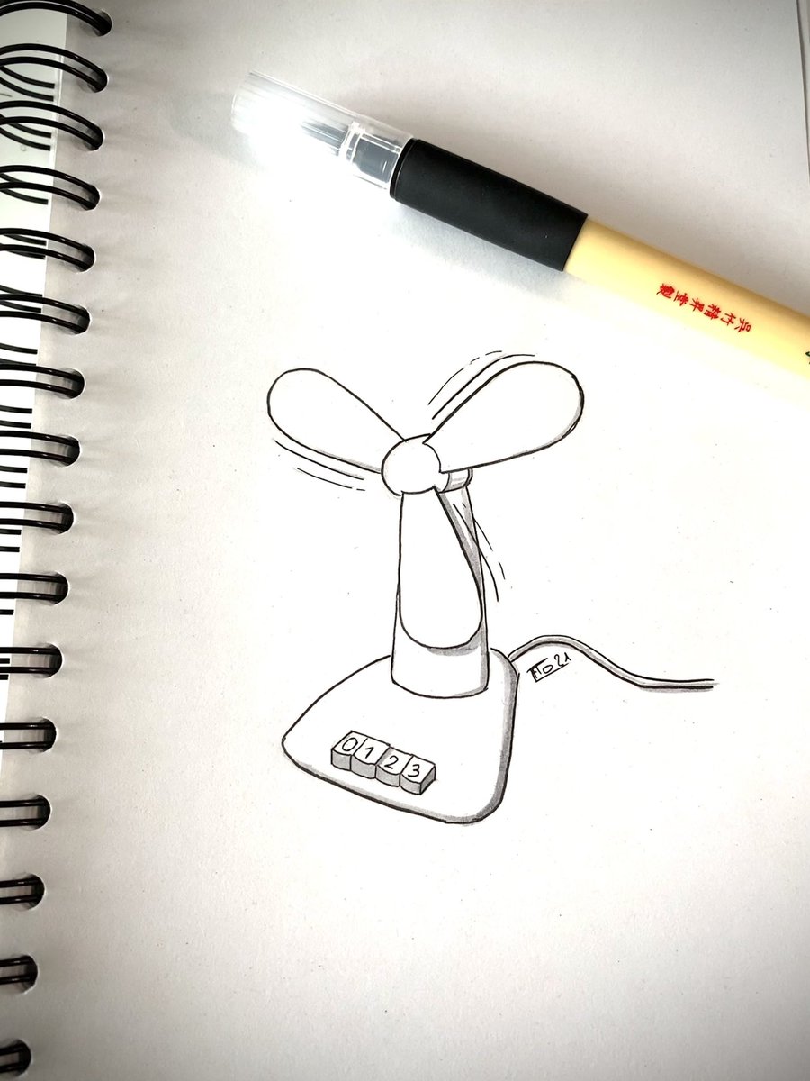 7 • Ventilateur • Dessiné au Kuratake ZIG Bimoji Fude Pen amzn.to/3lieXhK À demain pour la suite de l’#inktober #inktober2021 #ink #fan #ventillateur #illustration #ZIG #Kuretake