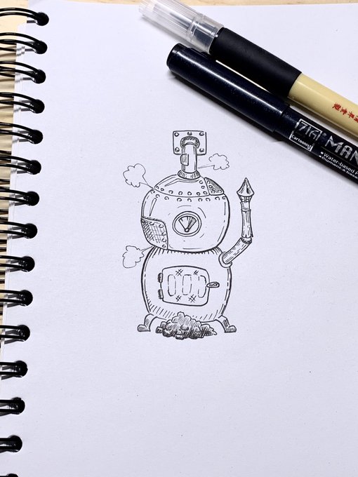 9 • Pression • Dessiné au Kuratake ZIG Bimoji Fude Pen amzn.to/3lieXhK et au ZIG Mangaka 01 amzn.to/3iLGYNc • #inktober #inktober2021 #inktober2021pressure #ink #encrage #zig #kuretake #steampunk