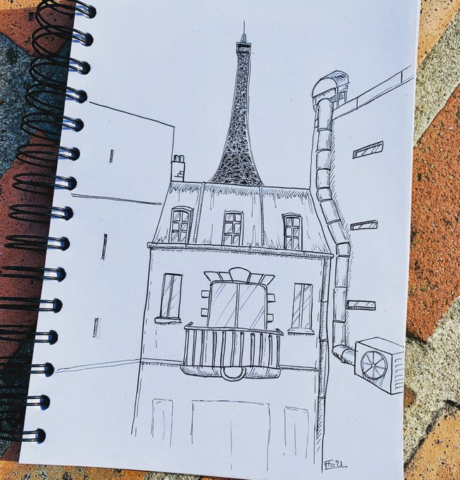 13 • Roof / Toiture • Une vue imaginaire des toits de Paris • Dessiné au Kuratake ZIG Bimoji Fude Pen amzn.to/3lieXhK et au ZIG Mangaka 01 amzn.to/3iLGYNc • #inktober #inktober2021 #inktober2021roof #ink #encrage #zig #kuretake #paris #art #artist #drawing