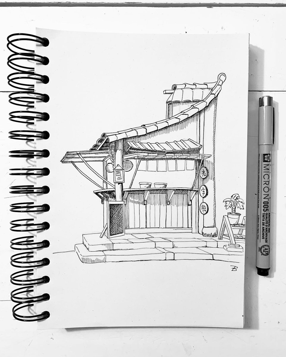 Inktober52 prompt 46: "SHOP" Welcome to China in front of this traditional mooncake shop 🥮 from a Netflix animated picture? Can you guess which one is it? #inktober52shop #inktober52 #inktober2021 #inktober