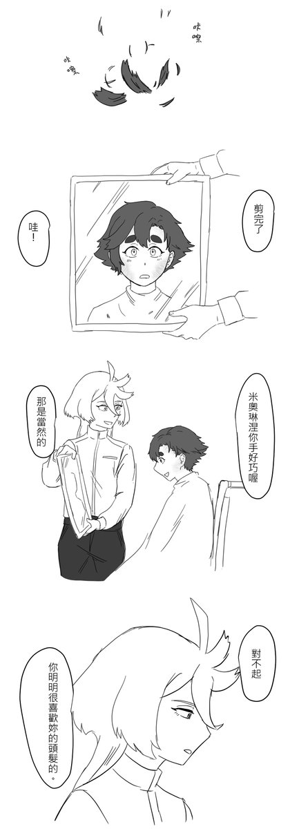 蘇萊塔三年後的髮型感覺馬尾變比較短,可能曾經剪短又再留長,所以就畫了這篇漫畫 ミオスレ