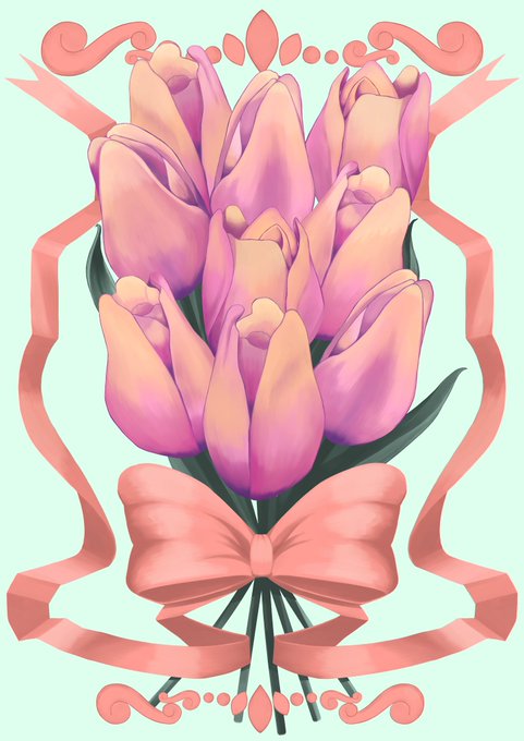 4 199 【再掲】9本のチューリップ🌷 #イラスト #illustration #tulip 22/06/13 20:34