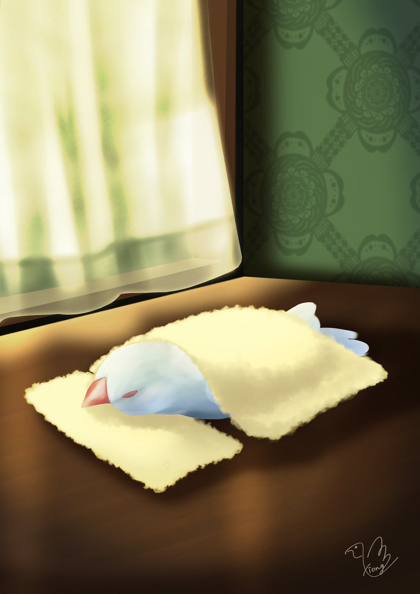 窓辺でお昼寝🕊 #イラスト #illustration #文鳥