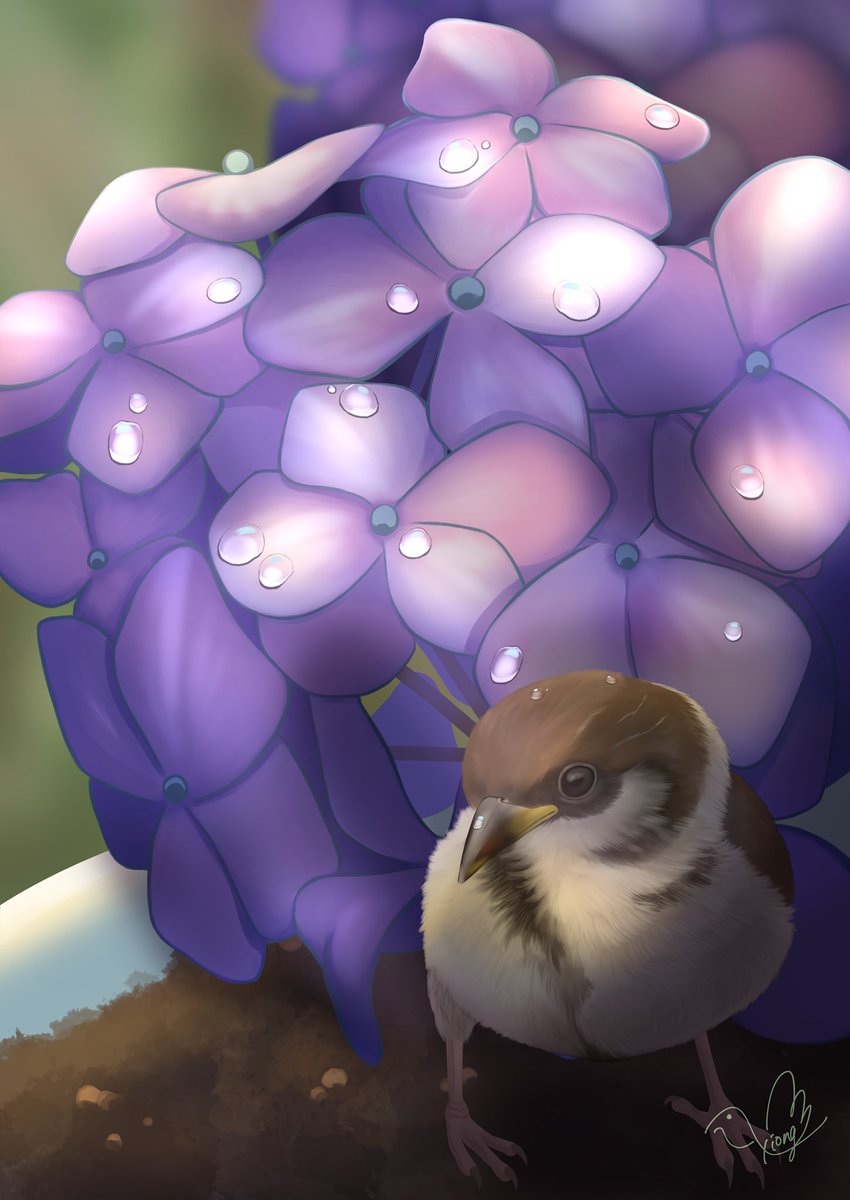 紫陽花傘で雨宿り #イラスト #illustration