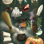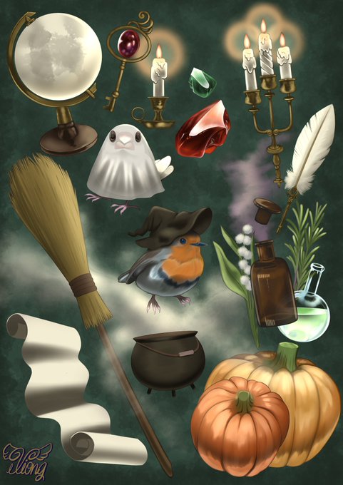 文鳥おばけとコマドリのハロウィン🎃 小道具頑張って描きました! #イラスト #illustration #Halloween2022