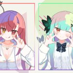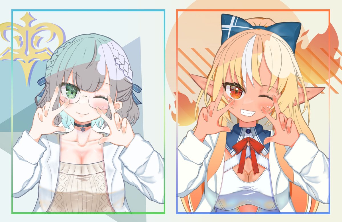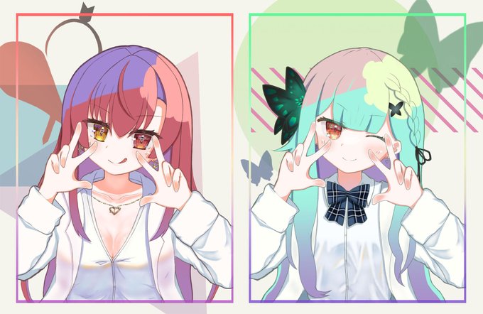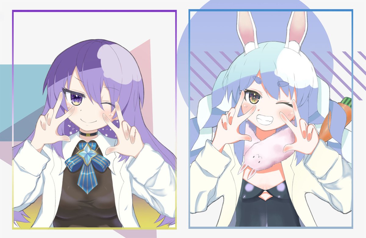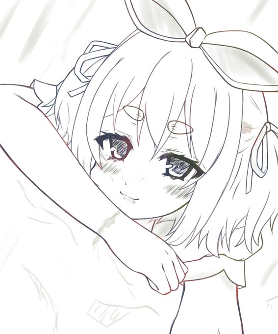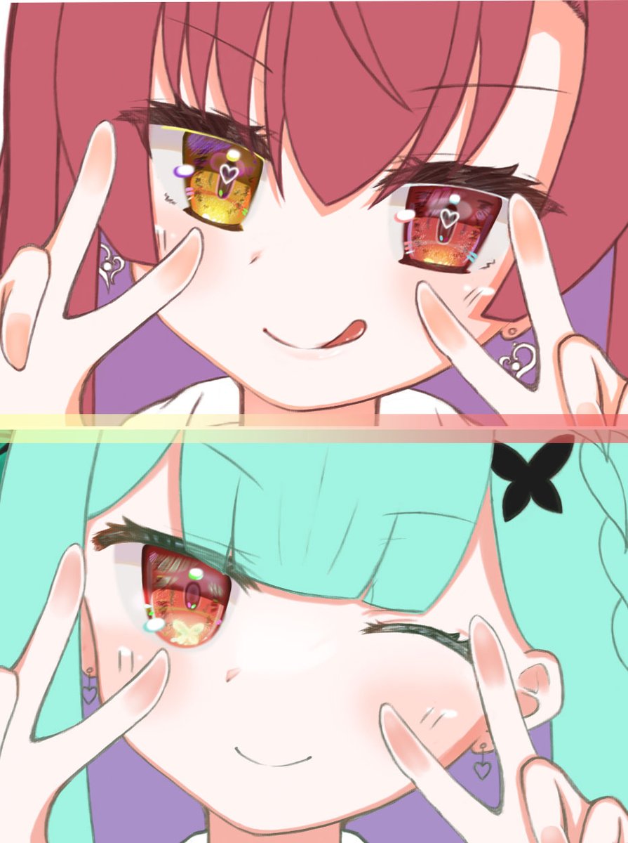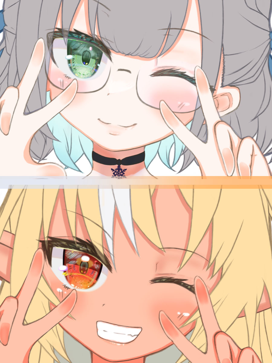 #ぺこらーと #HoshinovArt やっと線画できた、😇 ディズニーのエピソードにあった、お互いのプレゼント(ぺこちゃんにはブレスレット、ムーナちゃんにはイヤリング)を身に着けて自撮りしてる風!構図が迷走しましたが良い感じになったので色塗り頑張ります!そしてムーナちゃん新衣装おめでとー!🎉