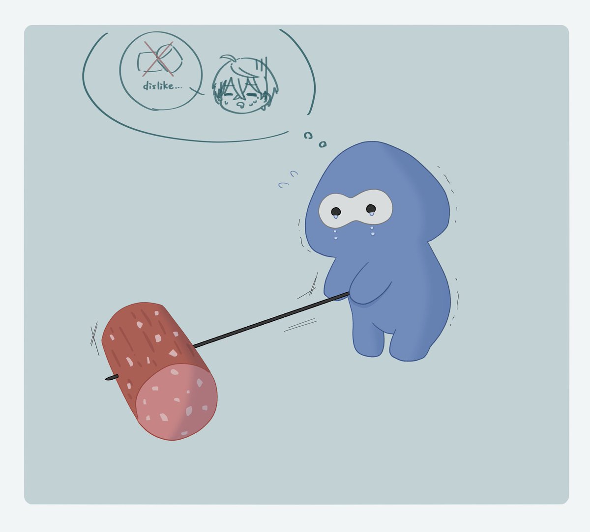 マシュマロが苦手と言われてしまったのでマシュマロづちをサラミづちに変更してみたものの、マシュマロとサラミの質量差を勘定に入れておらずサラミづちが持ち上がらないあおきづちのFAです。 #SliPaint