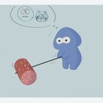 21 183 マシュマロが苦手と言われてしまったのでマシュマロづちをサラミづちに変更してみたものの、マシュマロとサラミの質量差を勘定に入れておらずサラミづちが持ち上がらないあおきづちのFAです。 #SliPaint 21/10/04 01:48
