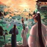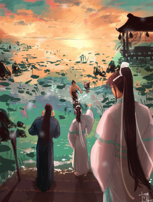 Wangxian beach day +ayuan ; It was supposed to be a quick sketch but I had a a bit too much fun on this one twitter.com/yeehawmeowqing…