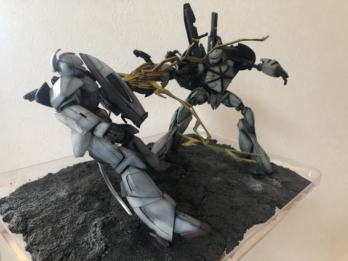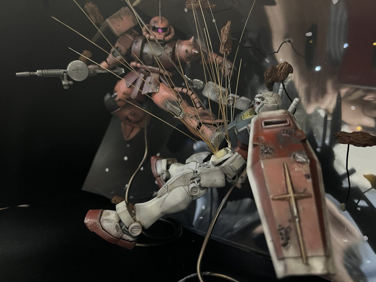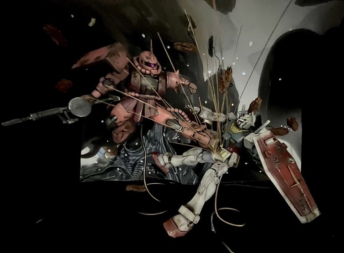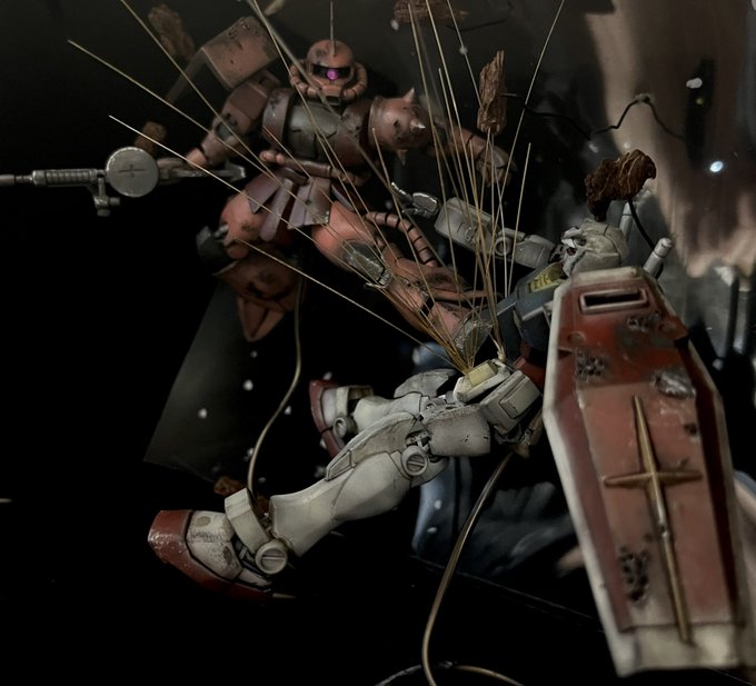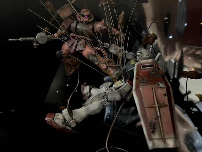 今日作ったジオラマもう一つ。 タイトル「EGOIST」 こちらはビルダーダイバーズ リライズよりヒロトのトラウマの再現です。 後ろに倒れてるアヴァロン仕様のウィンダムも実はけっこう凝って作ってるw #ガンプラの画像を貼るとRTされると聞いて #ガンプラ好きと繋がりたい