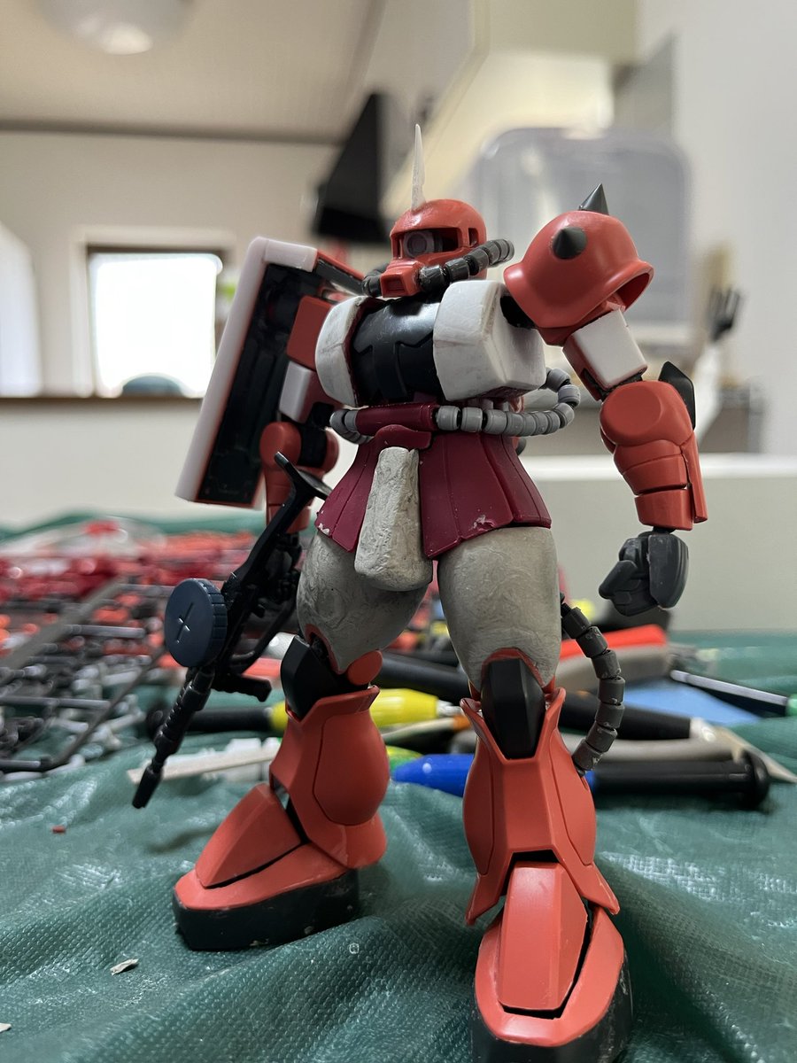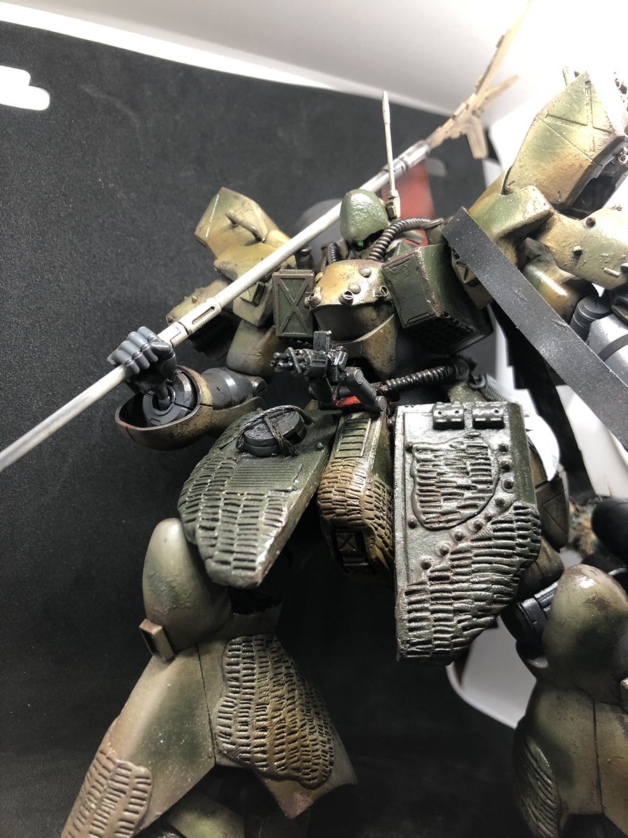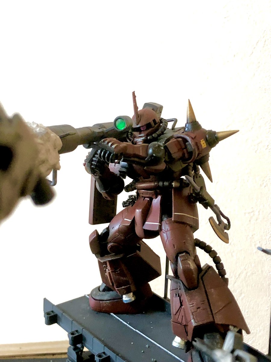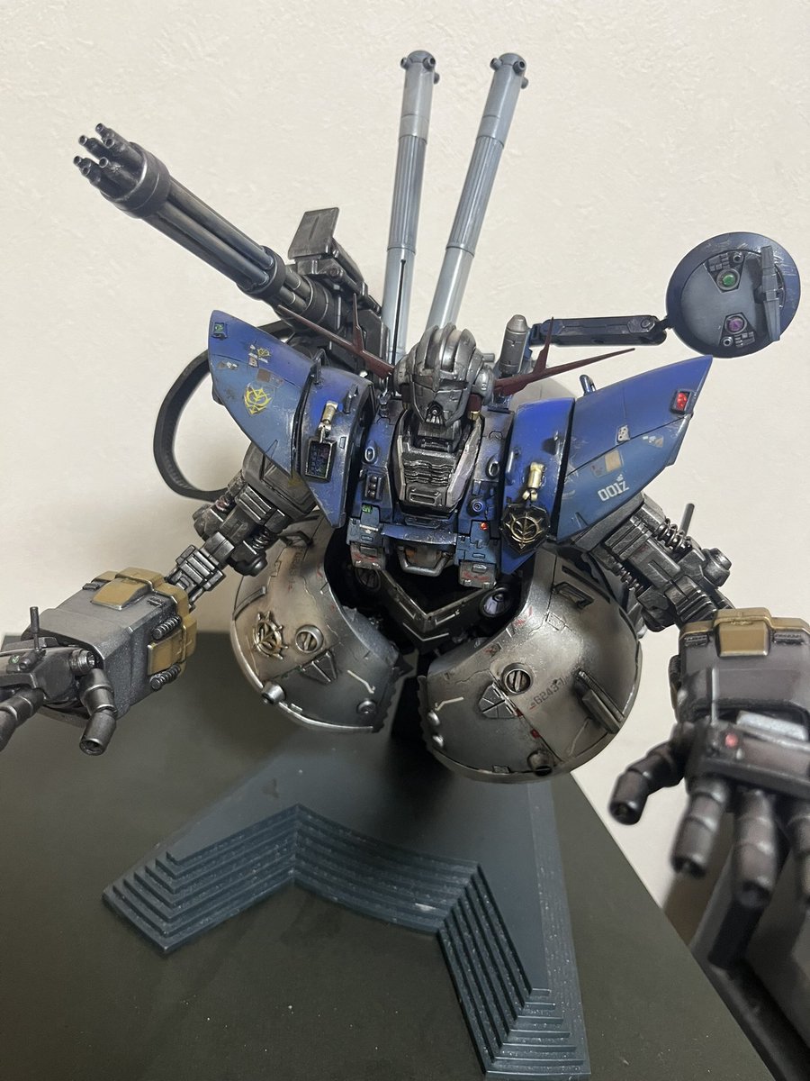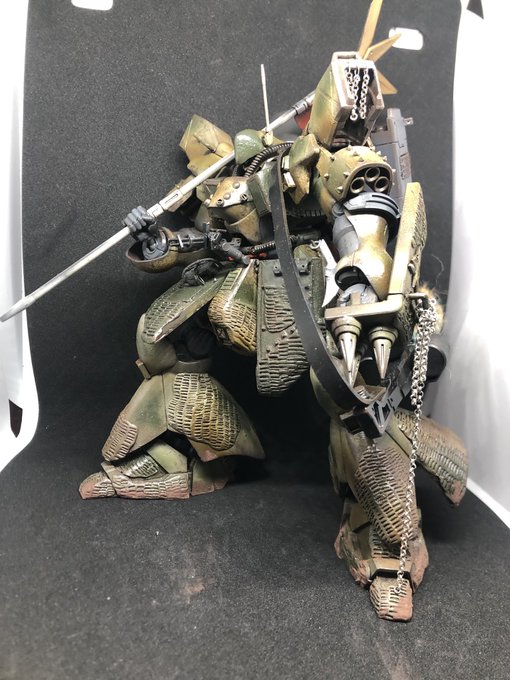 陸戦型サザビー完成しました。 腹部のメガ粒子砲を取り除き、複座のバルカンになってるなど俺設定満載で、ガッツリミリタリーテイストは初めてでしたが、楽しく作れました。 #ガンプラはどんな自由な発想で作ってもいいんだ #ガンプラ好きと繋がりたい #ガンプラの画像貼るとRTされると聞いて