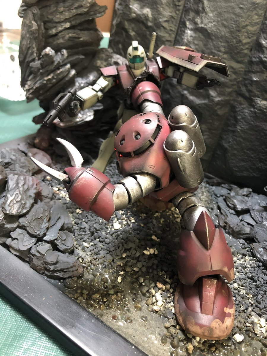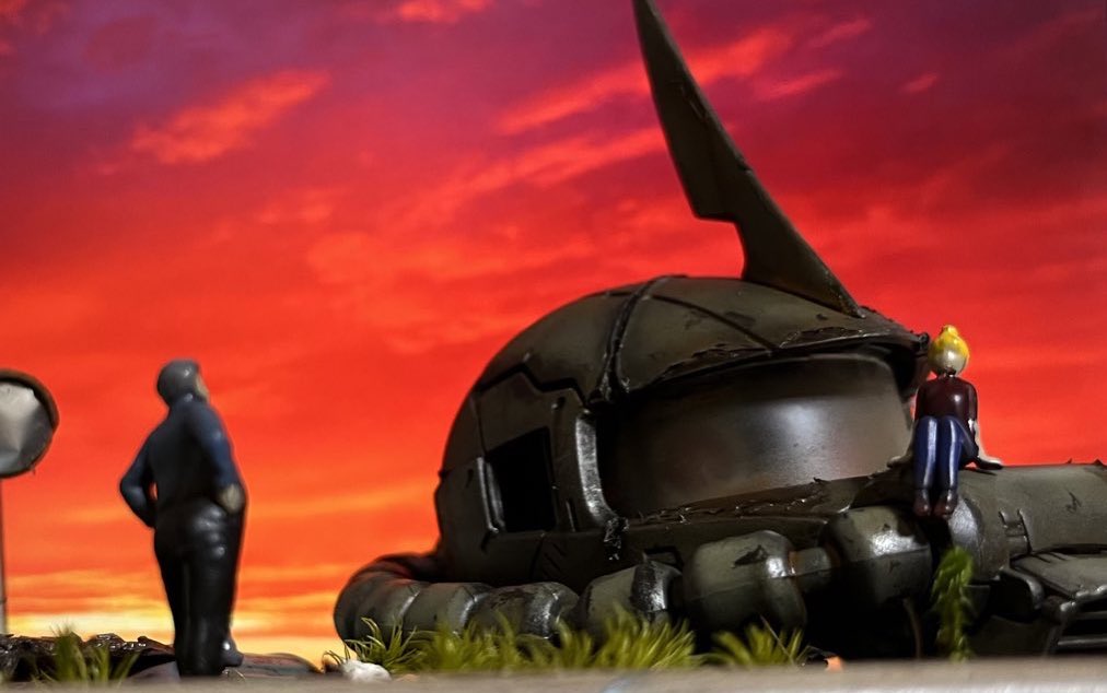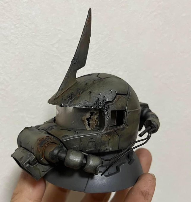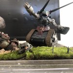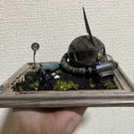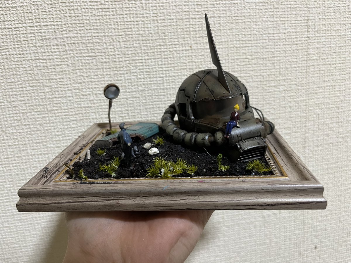今日作ったジオラマ。 ガンプラでなくザクヘッドですがw 人物はラルさんとハモンさんのつもりです。 #ガンプラの画像を貼るとRTされると聞いて #ガンプラ好きと繋がりたい #全日本汚し塗装連盟