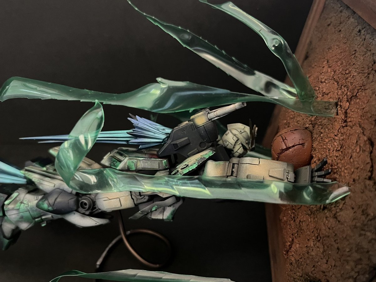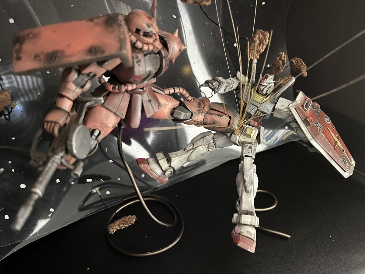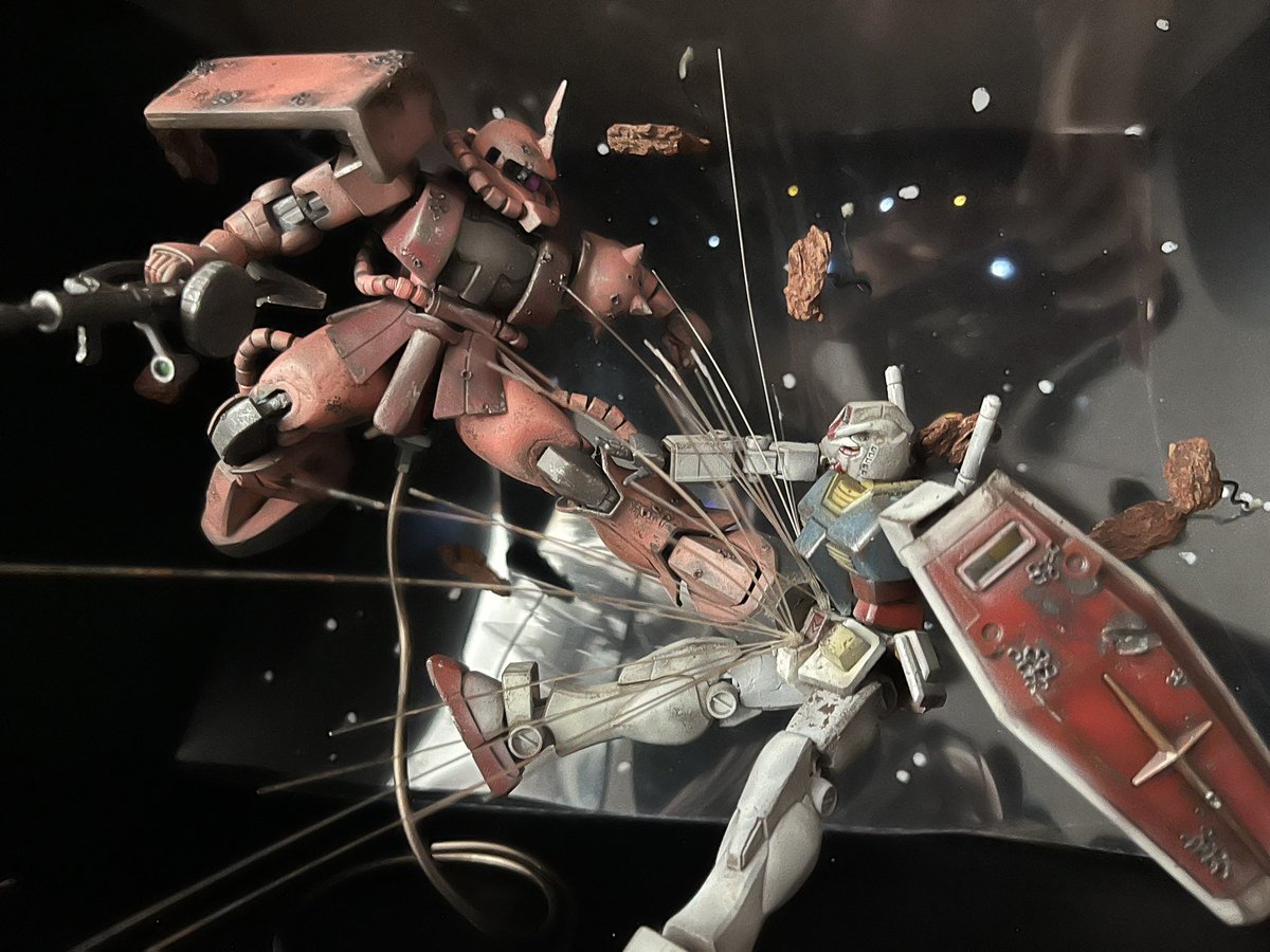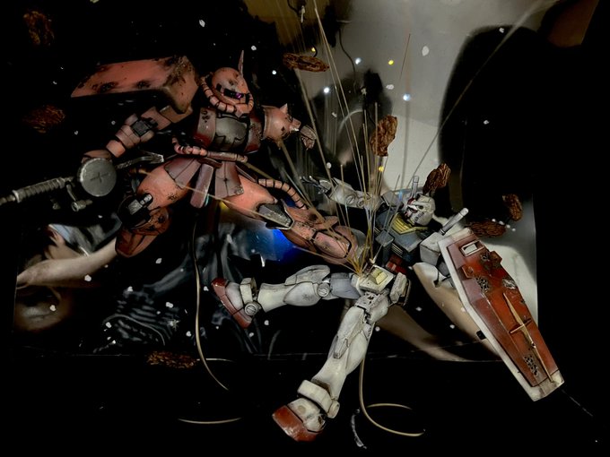 EG νガンダムでアクシズショックのジオラマつくりました。 サイコフレームの光、アクシズの赤熱の光、塗装でかなり試行錯誤しました。 #ガンプラ好きと繋がりたい #ガンプラの画像を貼るとRTされると聞いて