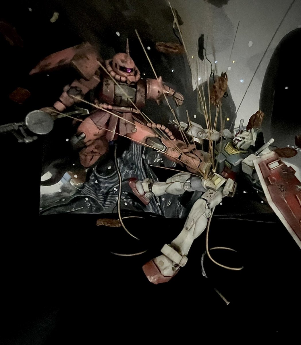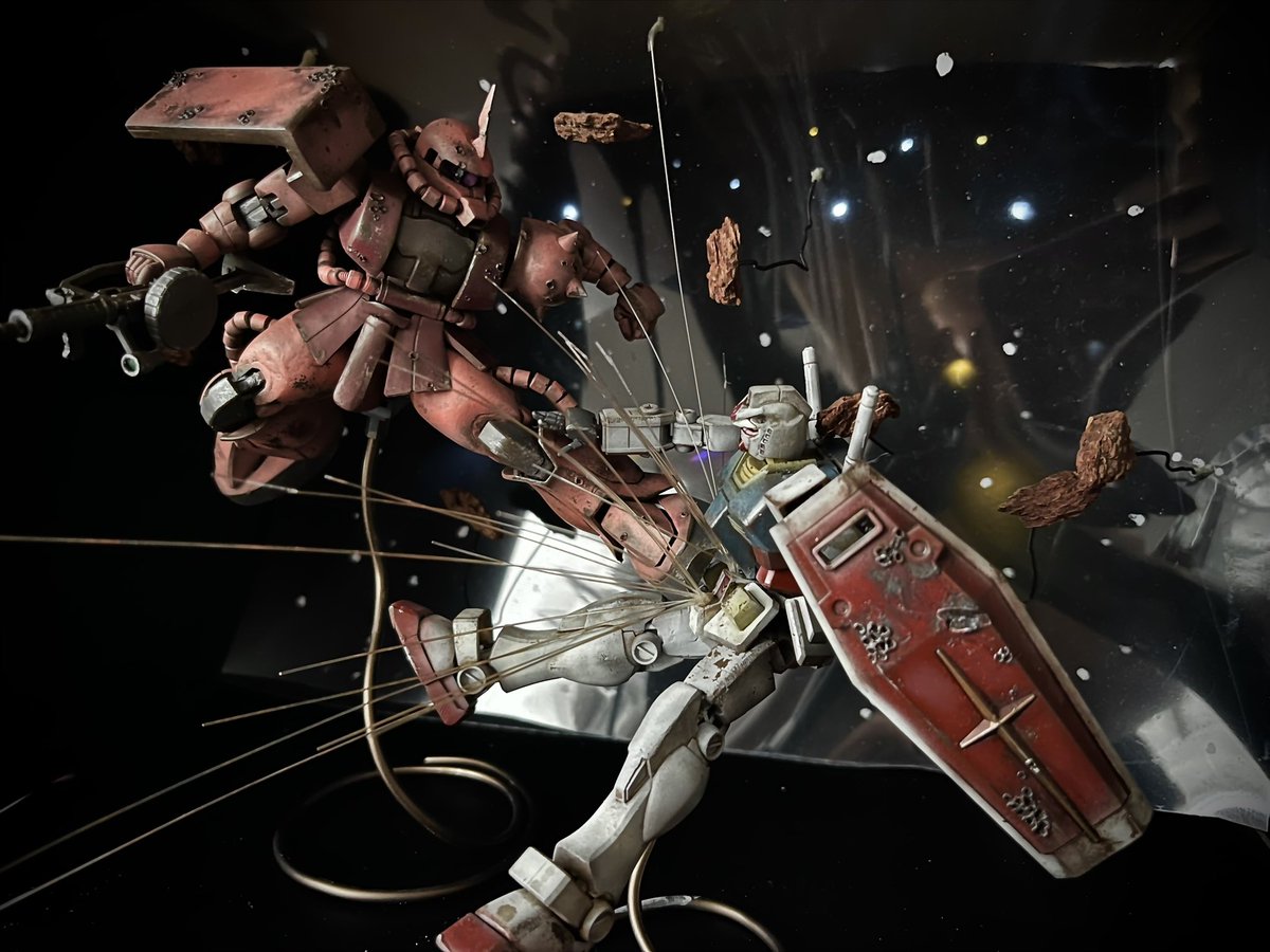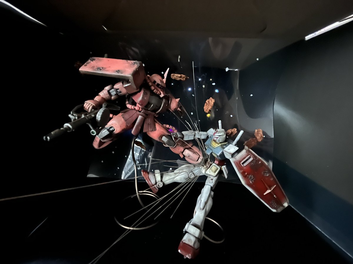EG νガンダムでアクシズショックのジオラマつくりました。 サイコフレームの光、アクシズの赤熱の光、塗装でかなり試行錯誤しました。 #ガンプラ好きと繋がりたい #ガンプラの画像を貼るとRTされると聞いて
