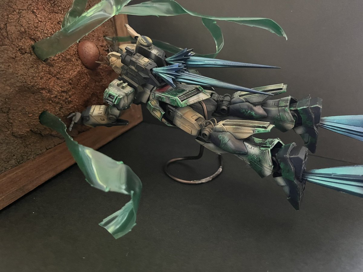 林哲平先生の作例を参考にHGとMGをミキシングしてセンチネル誌面風にプロポーションを変更したEx-Sガンダム。 大型スラスター、連射型スマートガンをスクラッチしたり、ロービジカラー、ピクセル迷彩と色々やってます。 #今月作ったプラモ晒そうぜ #プラモを見せあって金曜日を乗りきろう