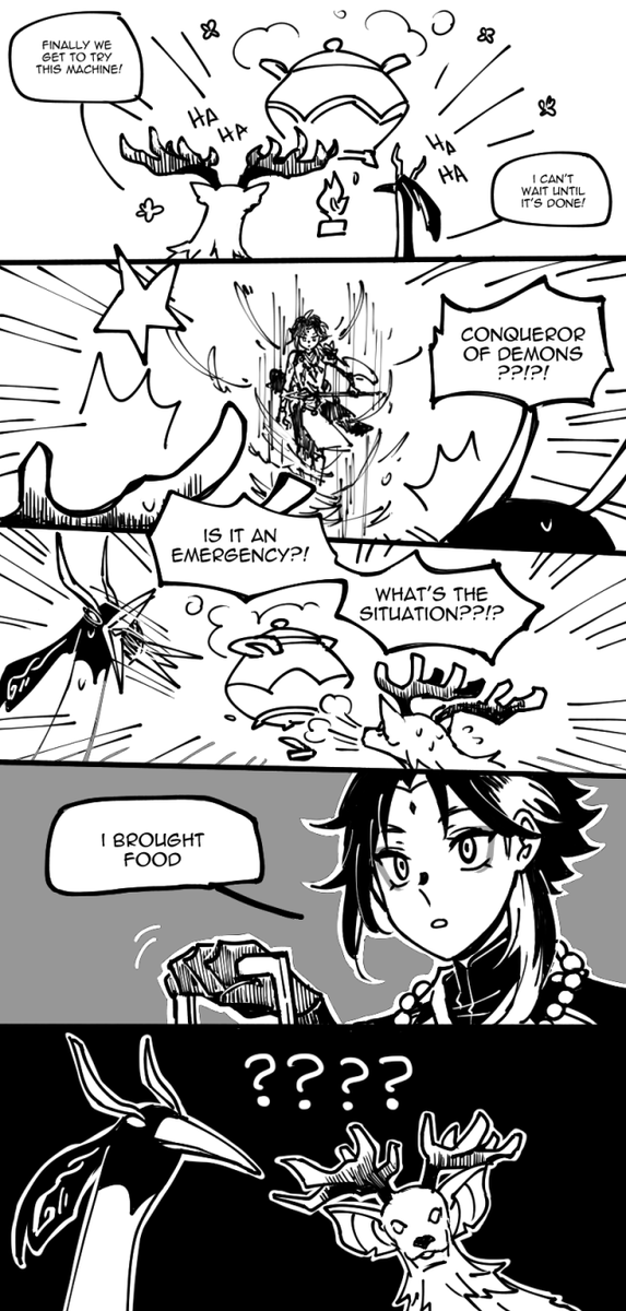 Comfortable Silence. A short comic i did for Xiao's birthday last year but only finished just recently (looks away....) Probably zhongxiao (it's zhongxiao), alongside the traveler as usual. Read from left -> right! (1/3)
