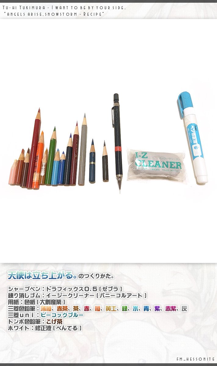 『天使は立ち上がる。のつくりかた。』 先日描きました『天使は立ち上がる。(twitter.com/fm_hessonite/s…)』の作業風景を簡単にまとめてみました。 なんとなくですが、作業風景をお楽しみいただけますと幸いです。 #色鉛筆 #メイキング