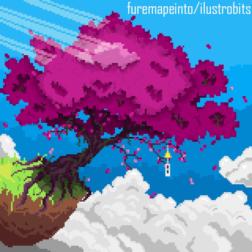 Sorry for the delay, I had not had time and well I wanted to give some time to be able to do this well, the following will be faster, or so I hope @pixel_dailies #pixel_dailies #scenery a and is a small tree of sakura xD I have to improve on the leaves #pixel