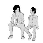 #ひらいて赤ブー 冨🌊義🌊×竈🎴炭🎴郎 水のせせらぎ、陽たまりの匂い 継続開催をお願いします☺️ 微力ながら描きましたユ〇クロ義炭 RTで集計されるとのこと、ご支援よろしくお願いします🙇
