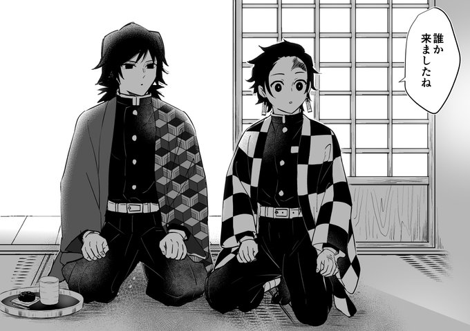 完璧スパダリから外れてて申し訳ないんだけどぎゆは普段結構ぼーっとしてるんじゃないかと思ってて 鬼殺のときとのギャップを知るのはたんじろのみという萌えを伝えたかったんだけど 大江戸義炭縁側日記🍵みたいな絵になってしまった