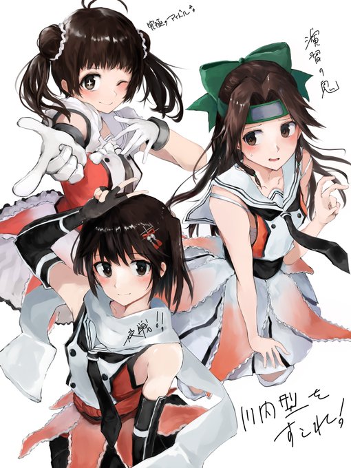 833 3197 宣伝写真の撮影時、姉と妹がノリノリすぎて若干引いてるけど一応自分も頑張ってポーズをとってくれる神通さん 23/08/21 13:10