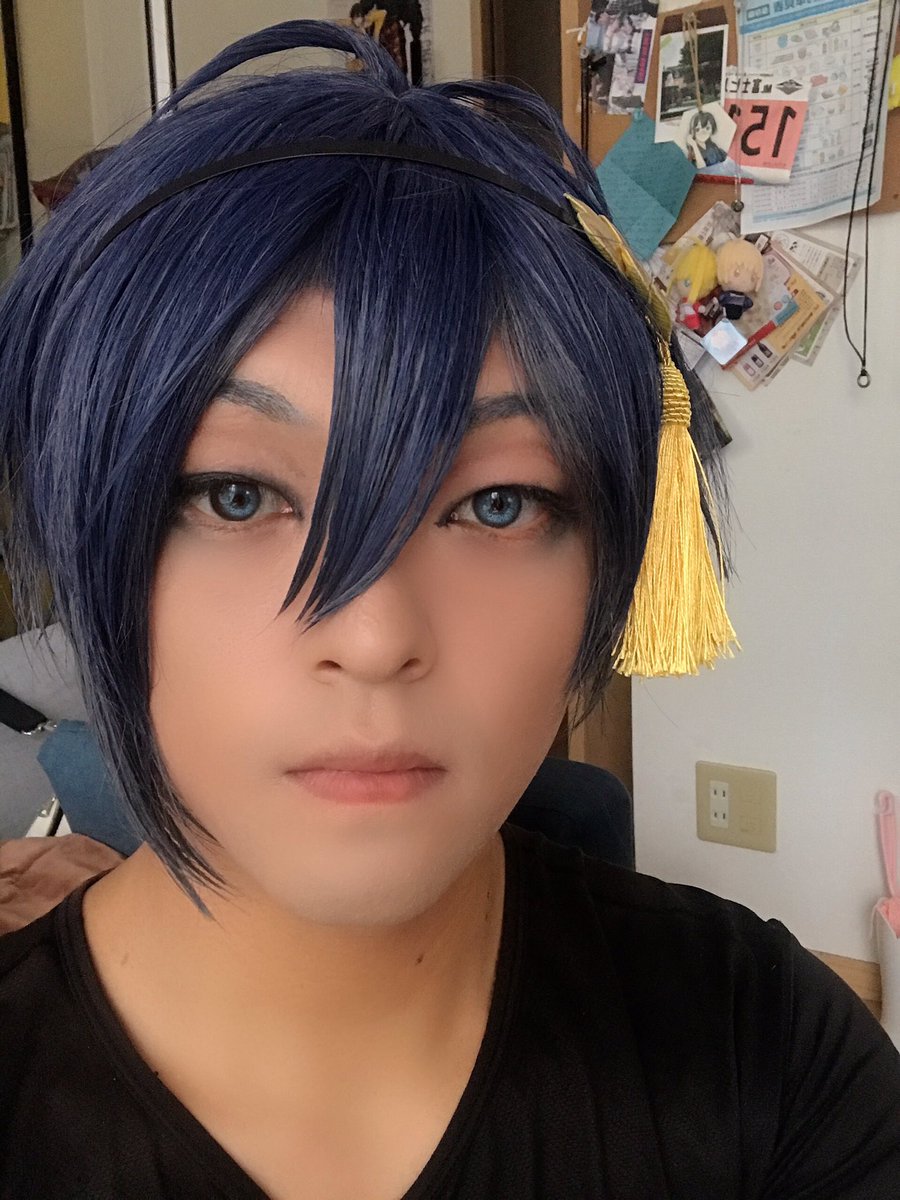 試着した!頭が軽くなったし、前が見やすくなった(笑) しばらくはこのウィッグでいこ😌 SNOWで肌とカラコンだけ入れさせてもらった😎 SNOWのおかげでイイ感じ←(笑) #三日月宗近 #コスプレ 顔だけ