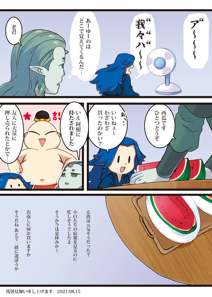 #ろしゃシークレットネップリ中身公開 16日になったので公開します🥳と言ってもお金払ってくれた方とは分けたいので文言は変えましたw ついでに残暑見舞い漫画も描きました。 プリントして頂いた方、企画のむ様、ありがとうございました!!