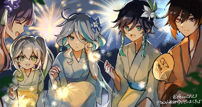 2192 13.5K お題箱より 七神で線香花火やってるイラスト #GenshinImpact 23/07/30 17:09