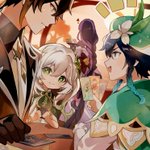 お題箱より 七神で線香花火やってるイラスト #GenshinImpact