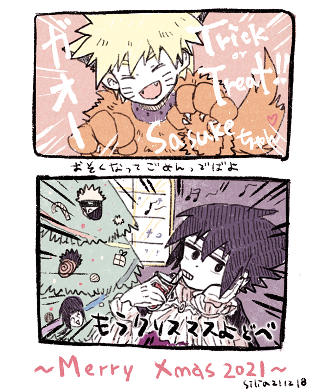 🍥「おれたちに」「まかせて」「ってばよ」「おう」「さすけ」「さすけ」「ほめて」 🍅「暴れるな君たち💢💢💢」 #ナルサス版ワンドロ