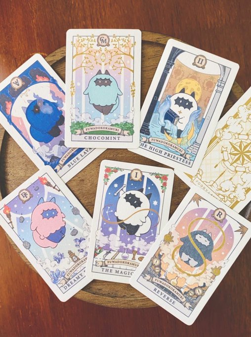 ソフビに毎回つけているおまけカードです✨ 段々種類も増えてきました! タロットカードになぞらえたものと、タロット風のものがあります☺️ #フワドコカムリ #イラスト #タロットカード #illustration #Tarotcards
