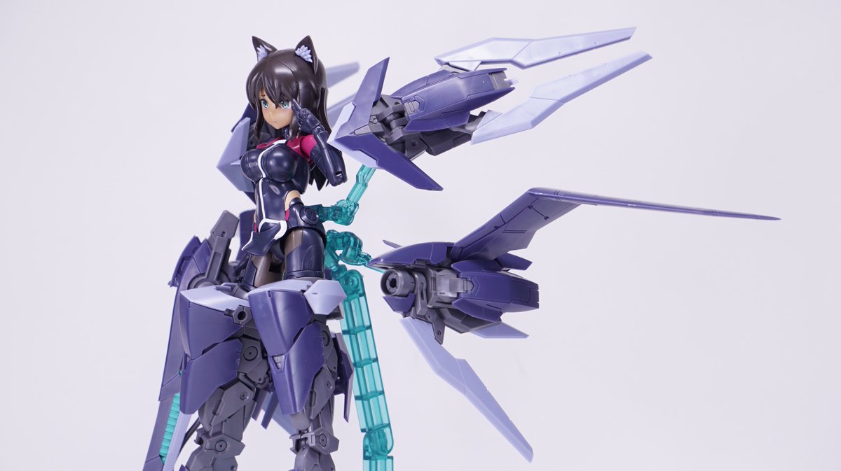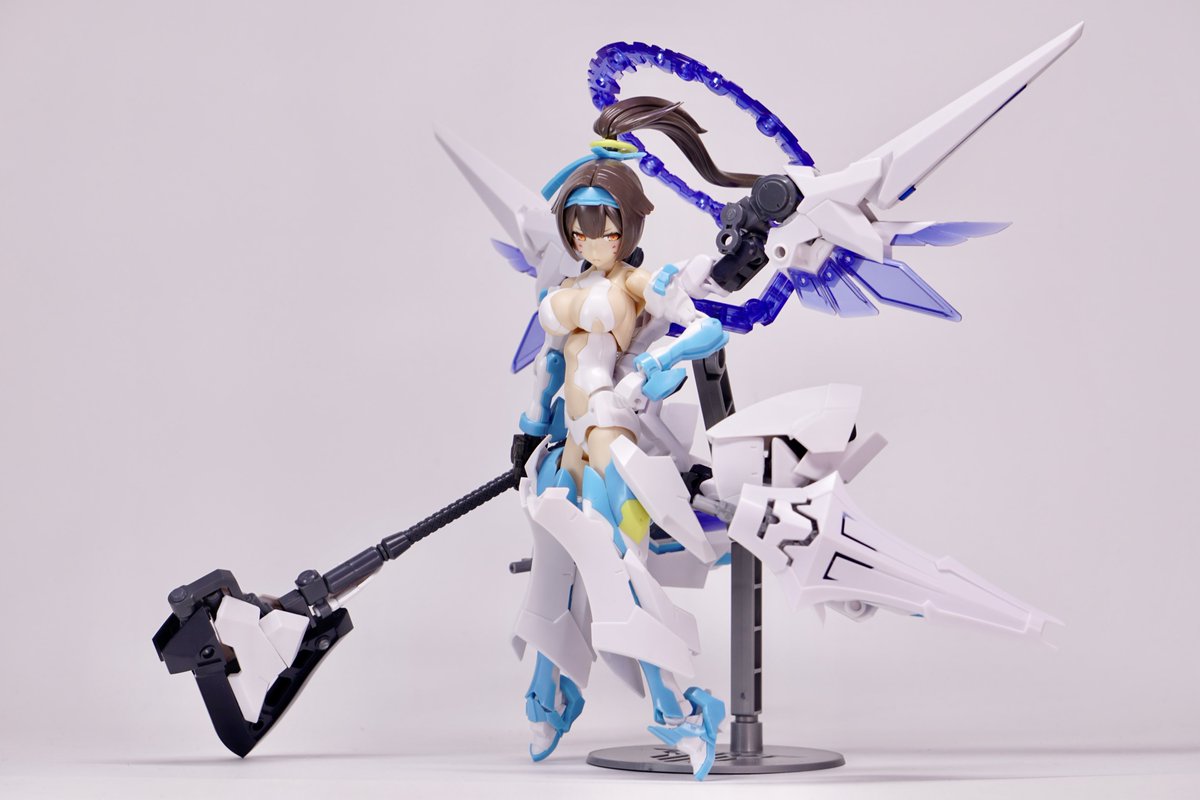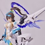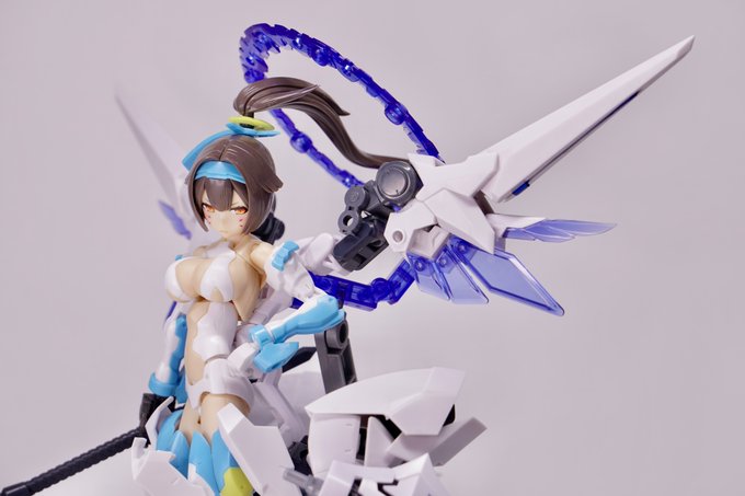 機械仕掛けの白翼。 新作MSGが青くて白いので、弓兵 蒼衣に装備。 オービットサークルの青い輪っかがハイロゥ(ヘイロー?)っぽい。 #メガミデバイス
