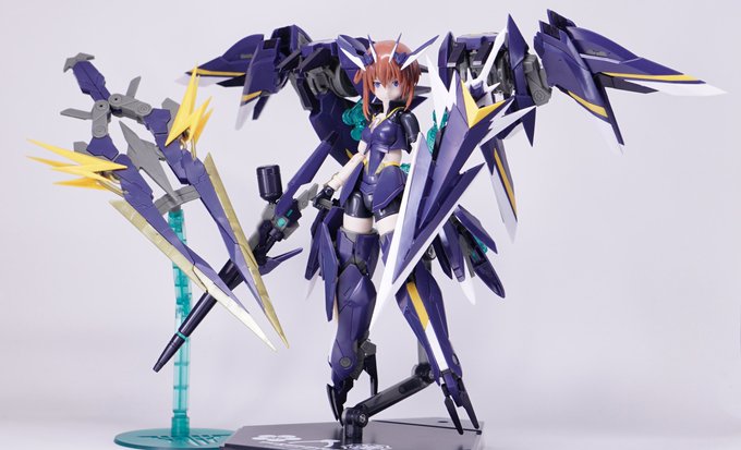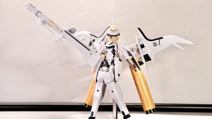 武装神姫 天使型アーンヴァルを組みました。 デカい得物、デカい翼、それらを外すと可動が優秀な素体。かなり良いキットです。 メガミをベースにしつつ、肩や股関節はアレンジされてて遊びやすいですね。多少ゴリラでも大丈夫そう。 #メガミデバイス