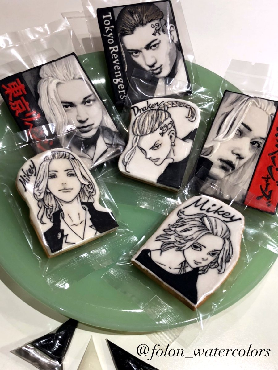 【東京リベンジャーズクッキー】🏍 ドラマイクッキーも見てくれる?🔥 (山田ケンチンもお皿にのせちゃう(爆)) 実写版ドラマイクッキーの全貌✨ 注※アイシングクッキーです❤️ #吉沢亮 #山田裕貴 #東リベ #東卍FA #東京リベンジャーズ #アイシングクッキー #WATERCOLORSアイシングクッキー