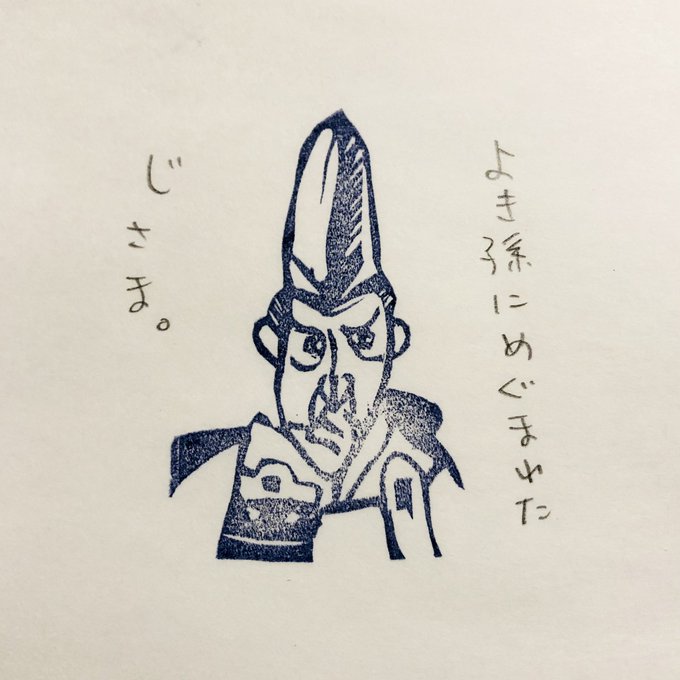 7 47 とりつくろう大将軍。 泣き笑い顔が秀逸でした。 にしても来週の不穏な空気よ… #鎌倉絵 #殿絵 #消しゴムはんこ 22/06/05 22:53