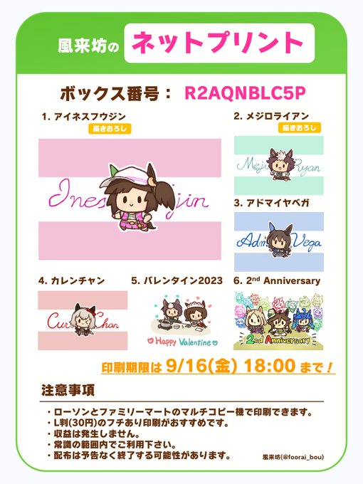 99 351 【おしらせ】 諸般の事情により、毎日投稿とつぶやきをしばらくお休みします。再開は9/13(水)を予定しています。 かといって何もしないのも申し訳ないので、ネップリを登録しておきました。気軽に遊んで下さい。 23/08/17 23:26
