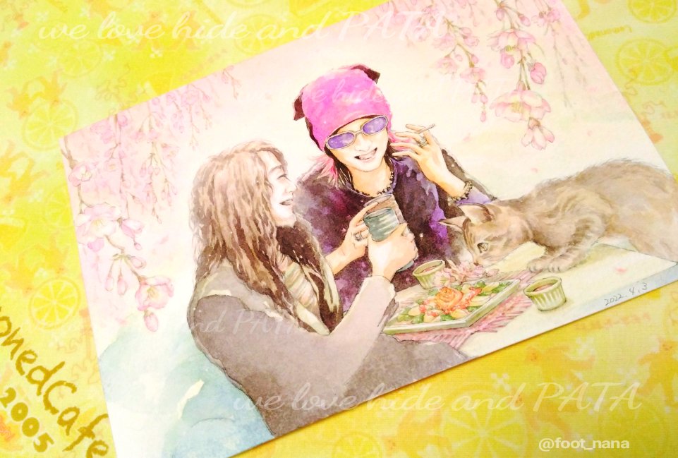 連休の醍醐味✨ ナナの新作が真夜中に届きました✨ しかしまた作風変えてきたな… うしろの美人さんに目がいって 困る😅 #hide #YOSHIKI #透明水彩 #イラスト #illustration #水彩画